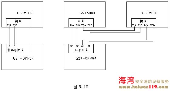GST-QKP04/2海灣消防氣體滅火控制器可通過(guò)本地網(wǎng)卡與火災(zāi)報(bào)警控制器(聯(lián)動(dòng)型)聯(lián)網(wǎng),接線示意圖如圖5-10所示。